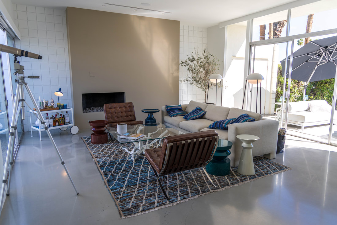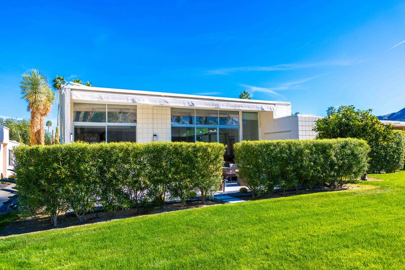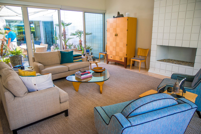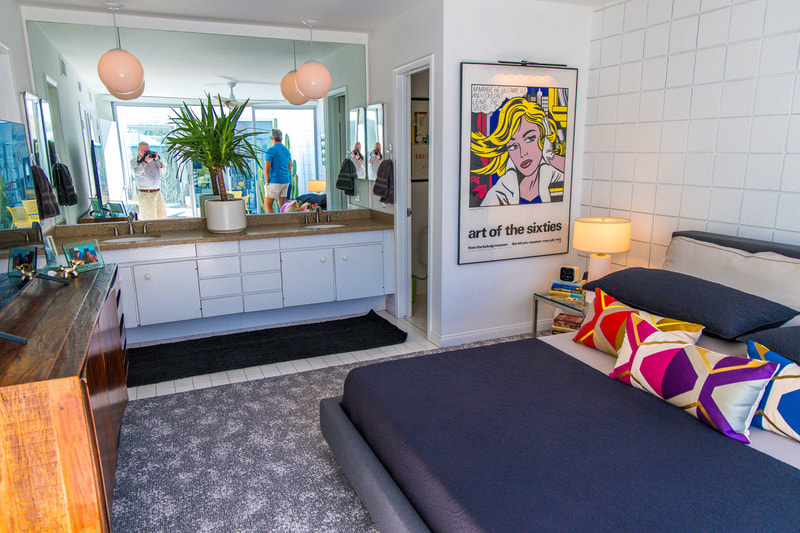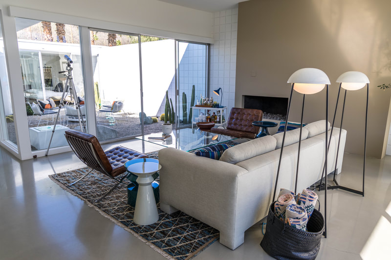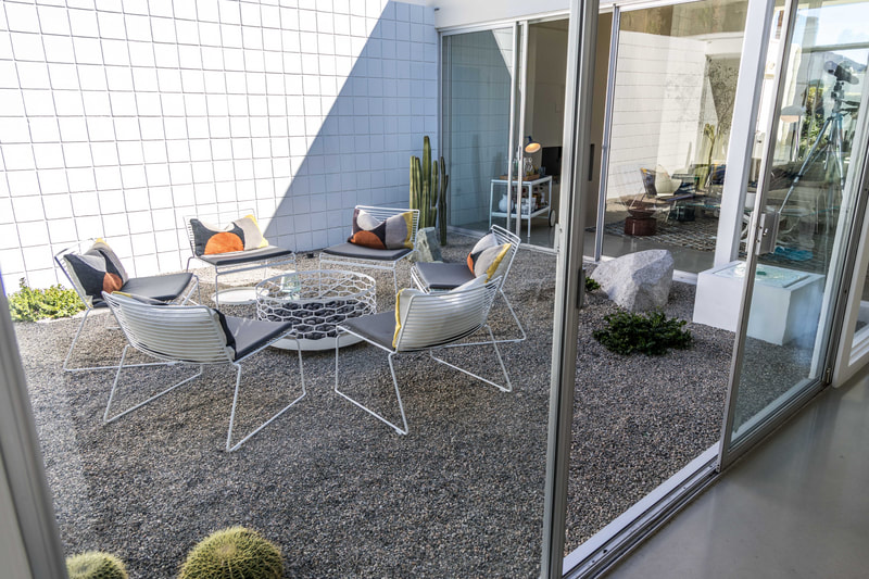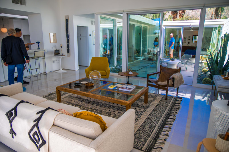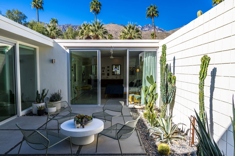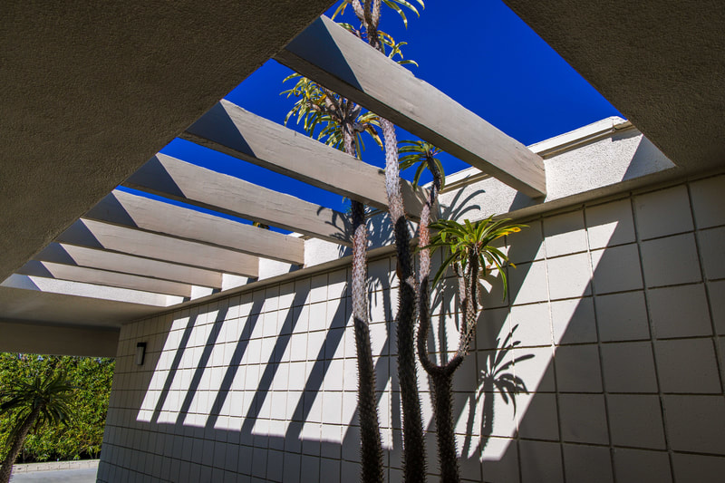 Country Club Estates is a 30 unit condominium complex located in south Palm Springs. Completed in in 1965, it stands as an exceptional representative of Desert Modernism as envisioned by master architect, A. Quincy Jones, FAIA (1913-1979). Jones demonstrated with Country Club Estates how well he understood its environment and the ways to adapt his designs to maximize livability. The sleek horizontality of its massing, its carefully planned spaces, and artful blurring of the line between indoors and out, all contribute to making Country Club Estates a stand-out of its type. I was able to visit 7 units (booties on feet) and came to see the genius of the architects' design. These units have all been recently remodeled, returning them to their original mid-century design.