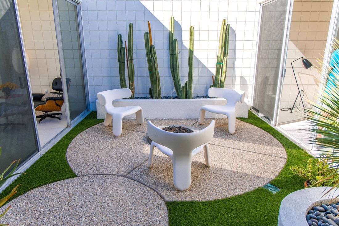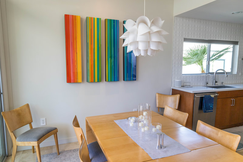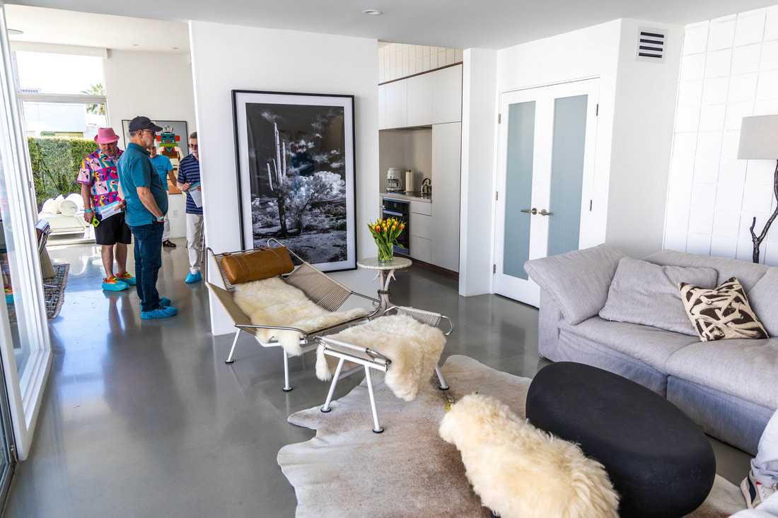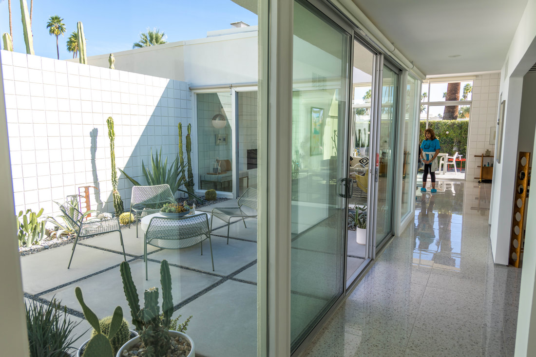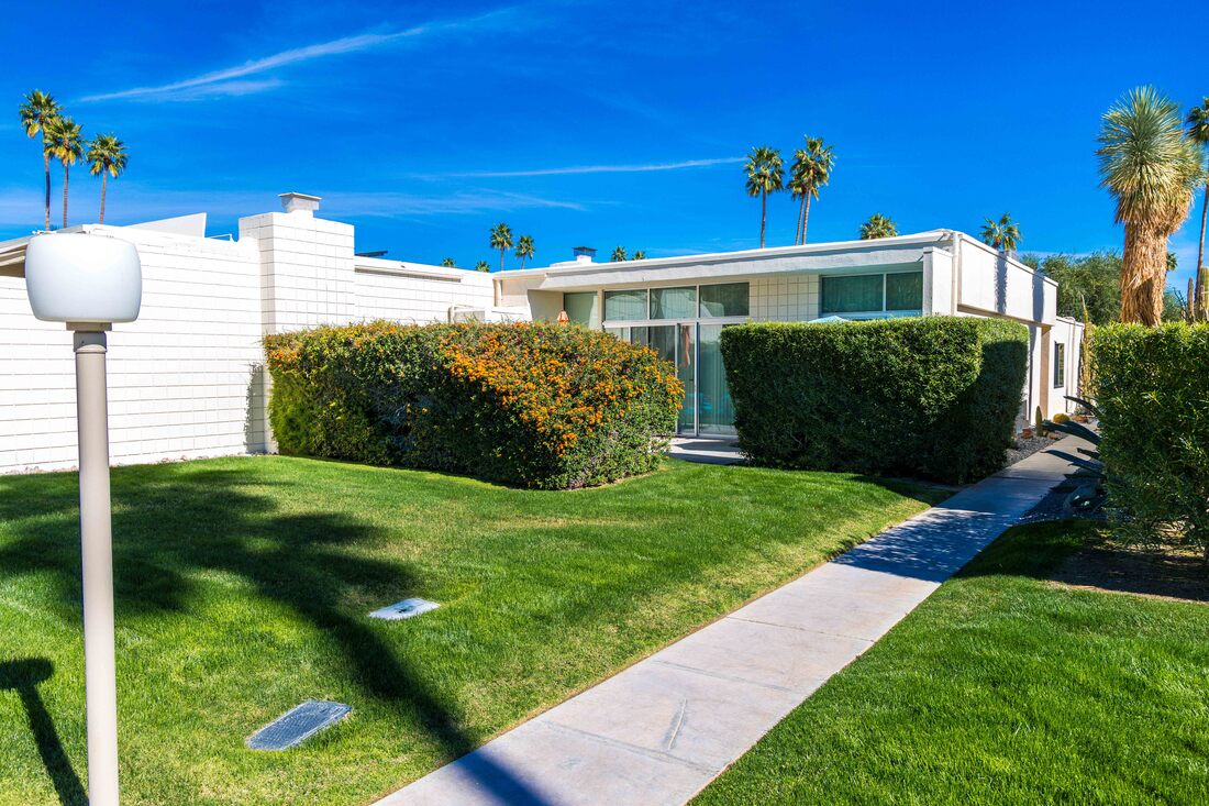 Country Club Estates is a 30 unit condominium complex located in south Palm Springs. Completed in in 1965, it stands as an exceptional representative of Desert Modernism as envisioned by master architect, A. Quincy Jones, FAIA (1913-1979). Jones demonstrated with Country Club Estates how well he understood its environment and the ways to adapt his designs to maximize livability. The sleek horizontality of its massing, its carefully planned spaces, and artful blurring of the line between indoors and out, all contribute to making Country Club Estates a stand-out of its type. I was able to visit 7 units (booties on feet) and came to see the genius of the architects' design. These units have all been recently remodeled, returning them to their original mid-century design.